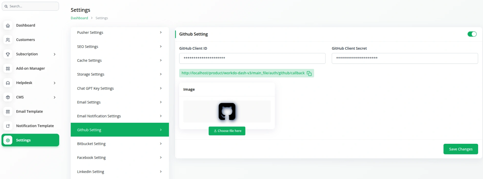 GitHub Login Settings for Super Admin
